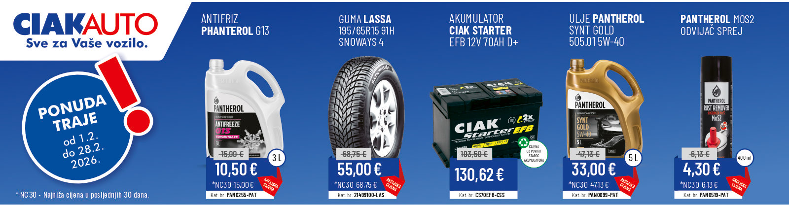 Program vjernostiDobrodošli u program vjernosti tvrtke C.I.A.K. Auto d.o.o. Vašu vjernost našim proizvodima i uslugama nagrađujemo brojnim pogodnostima. Ovisno o Vašoj potrošnji, putem CIAK Auto kartice pogodnosti možete ostvariti mnogobrojne popuste pri svakoj kupnji u maloprodajnim trgovinama tvrtke C.I.A.K. Auto. Osim popusta ... Saznaj više